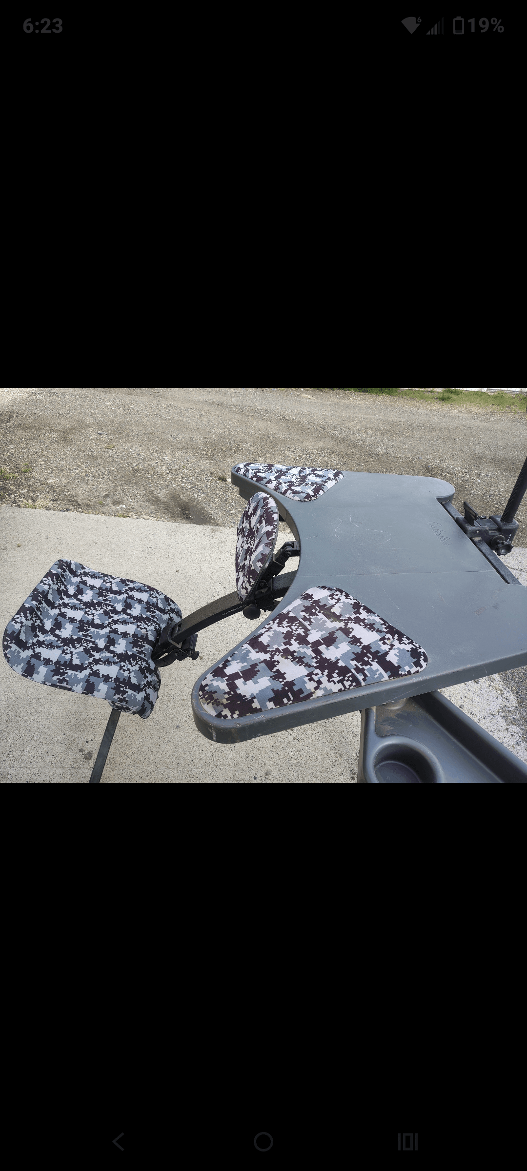 Cabelas folding shooting bench super comfortable and not too heavy. Sturdy and has cup holders on both sides.