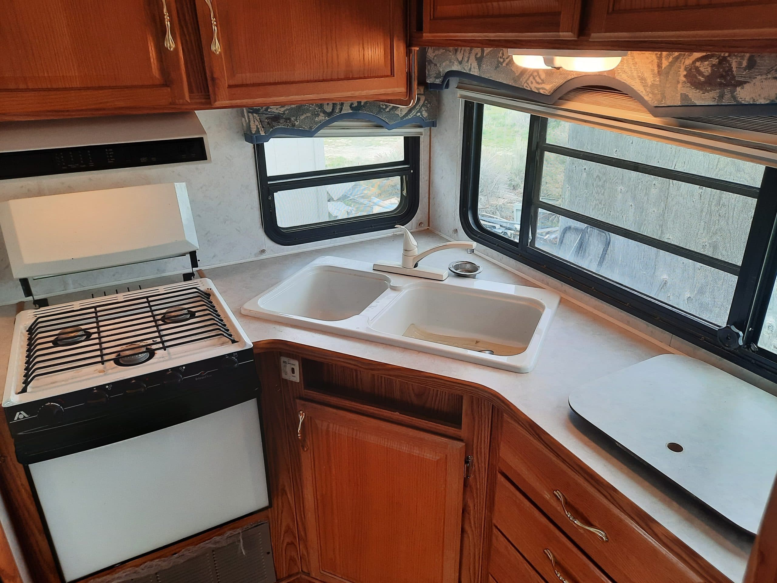 2002 Komfort 26FSG Fiberglass 5th Wheel28′ – 8′ Wide2 -Renogy Solar Panels mounted40A MPPT Renogy Solar Charge ControllerAnderson hitch235-80-R16 14ply load range G tires on high pressure rimsWheel bearings replaced 8-23New slide out awningNew Quiet ceiling fanWell loved, hubby hand rubbed out and waxed last year. Added extra insulation wherever possible. 12-volt plugins in bedroom for cpap machines.Everything works great.