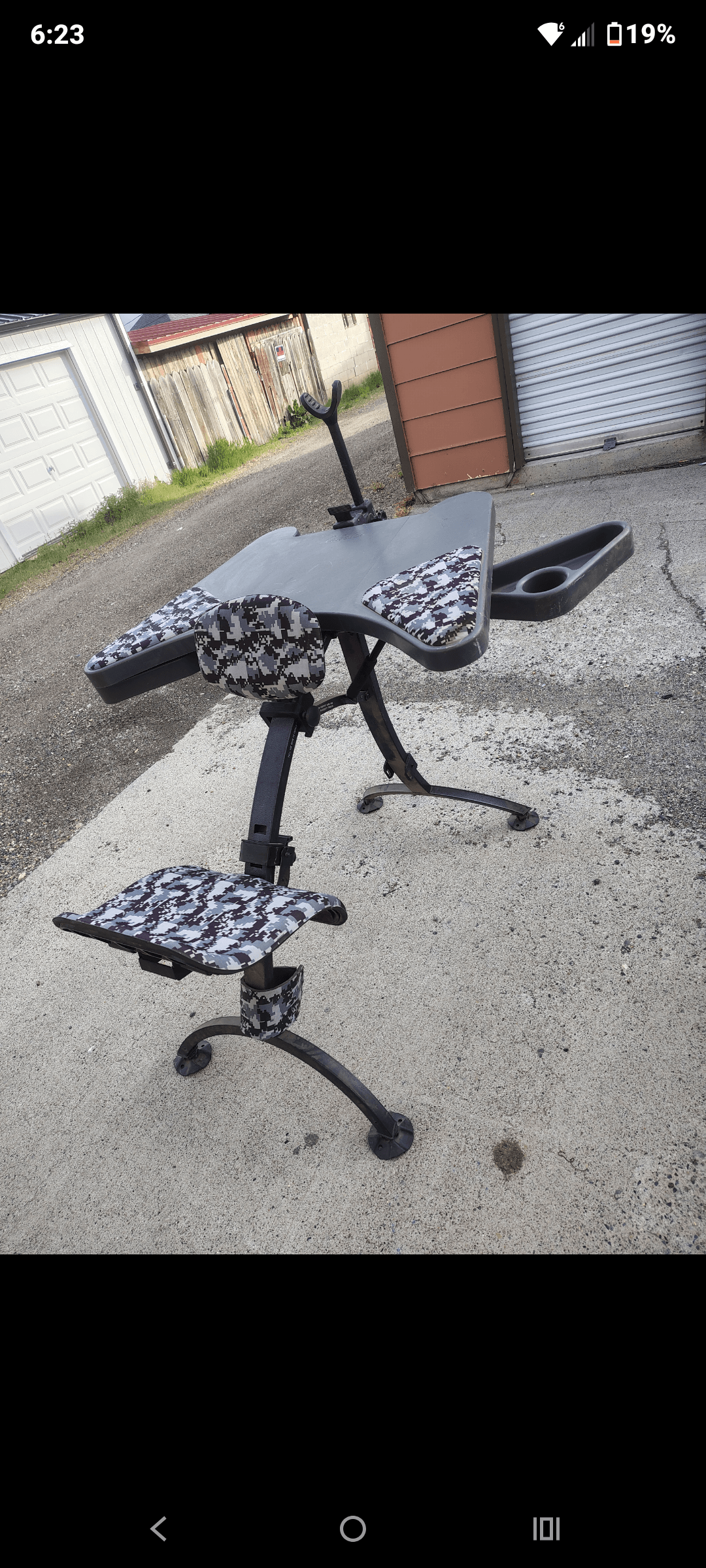 Cabelas folding shooting bench super comfortable and not too heavy. Sturdy and has cup holders on both sides.